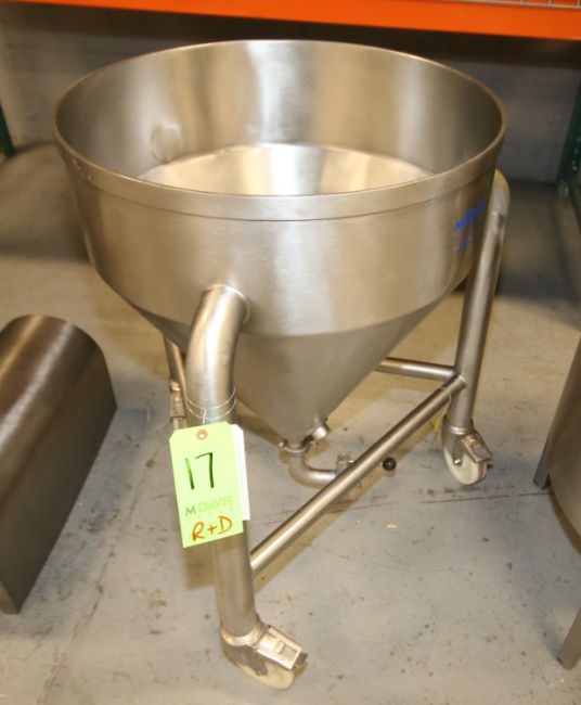25" W x 30" D Portable S/S Funnel with Bottom 1.5" Clamp Type Connection, Mounted on Casters (Rigging Fee $50)