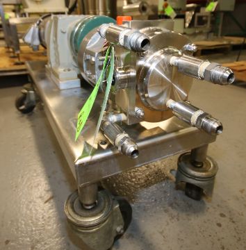 Fristam Positive Displacement Pump, Model 58S, SN 0601713, with Jacketed Head, 1.5 Clamp Type Connections, Includes Rotors, SEW / Dayton Drive Motor 3/2 hp / 3450/2850 rpm S/S Clad Motor, 208/230/460V 3 Phase, Mounted on S/S Frame with Casters(Rigging Fee $50)