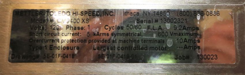 2013 Mettler Toledo Hi-Speed S/S In-Line Checkweigher, Model CM9400 XS, SN 13002321 with Touch Pad Display & Controls (W402)