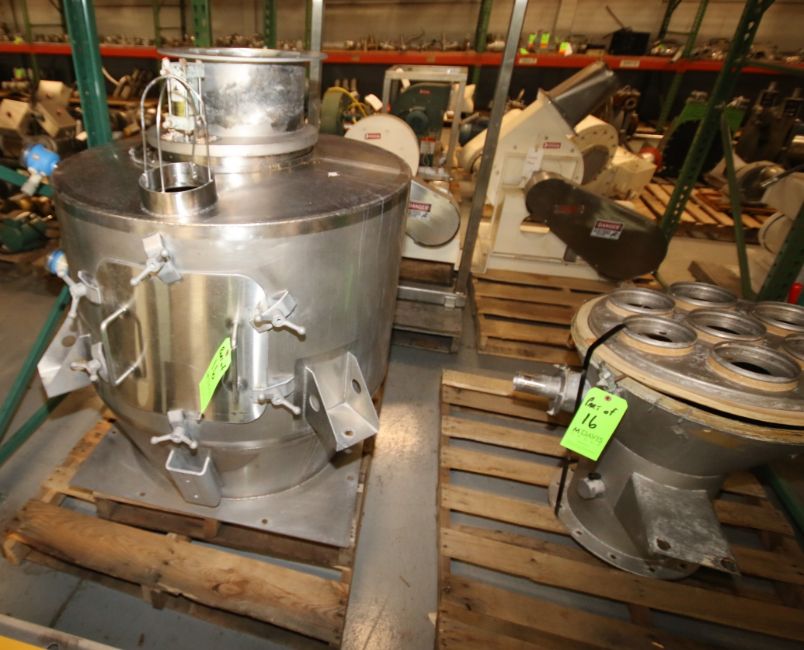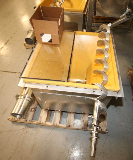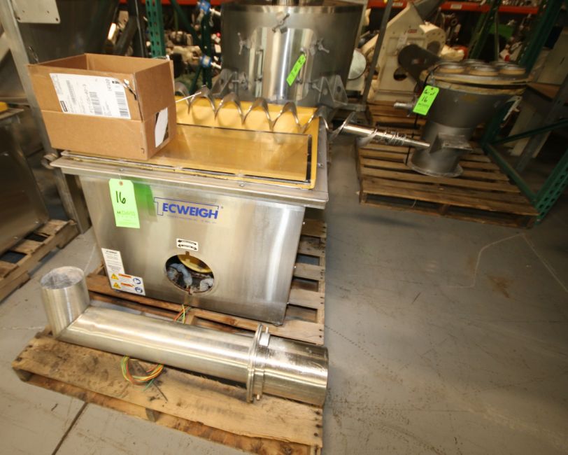 3 - Pcs. Powder Handling System Includes Tecweigh S/S Dry Material Feeder, Model E/CR28, SN 14058-1311, with 28" W x 28" W x 22" D Hopper, 5" S/S Auger, Also Includes 34" H x 35" W S/S Hopper with Side Door & Level Sensors & Top Mounted Dust Collector Assembly (W407)