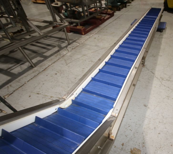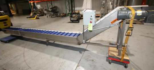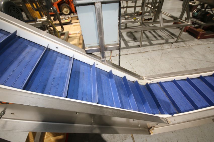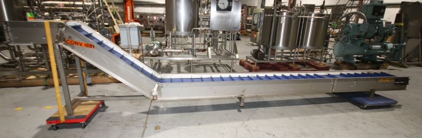 21 ft 4" L x 15" W Z Configured S/S Conveyor System, Upto 48" H, with Intralux Belt with 6" W Flight Dividers, 2 hp @ 1725 RPM Drive Motor, 208/230/460V 3 Phase, with Mounted Controls (W383)