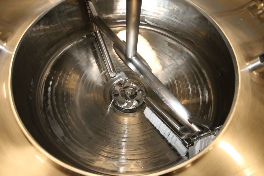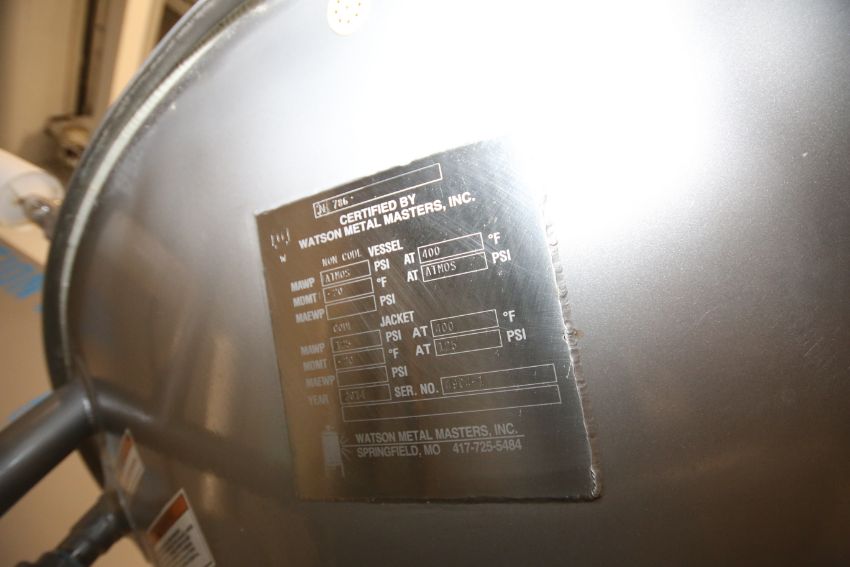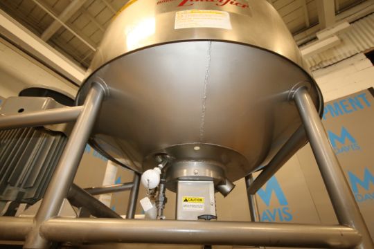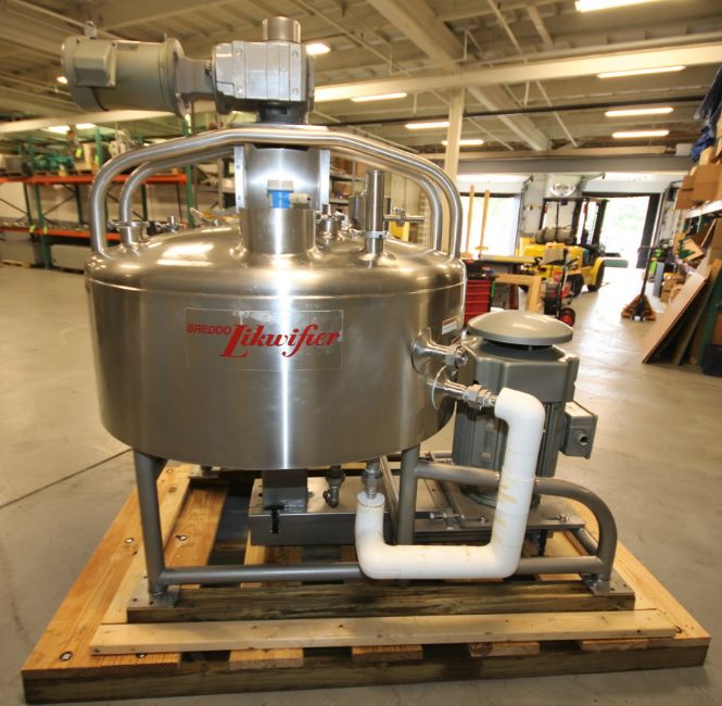 Breddo 100 Gal. Jacketed S/S Liquifier (Likwifier), Model LORWWSSD, SN D-582104 14133, with Off-Set Motor, Bottom & Side Scrape Surface Agitator with 3 hp/1760 RPM, 230/460V 3 Phase, Jacket - 125 psi @ 400 Degrees, Includes Hinged Lid, Sprayball & Air Acuated Butterfly Valve (W356)