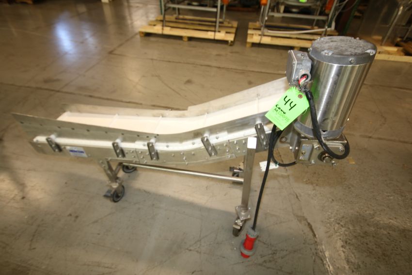 5 ft 3" L Portable Inclined S/S Product Conveyor System, with 11" W Intralux Belt with 12" Flights, with 18" to 35" H Frame, US 1/2 hp / 1725 rpm S/S Drive Motor, 208/230/460V 3 Phase (W431)