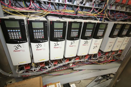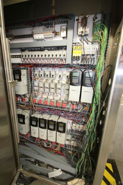 Moline 2 - Door Dough Sheeting Line S/S Control Cabinet - 74" L x 20" D x 95" H, Includes (18) Allen Bradley Powerflex 700 VFD's - Most 2 hp, Includes Relays, Breakers & Starters, 480 V 3 Phase (Note: Subject to Bulk Bid Lot #33) (W419)