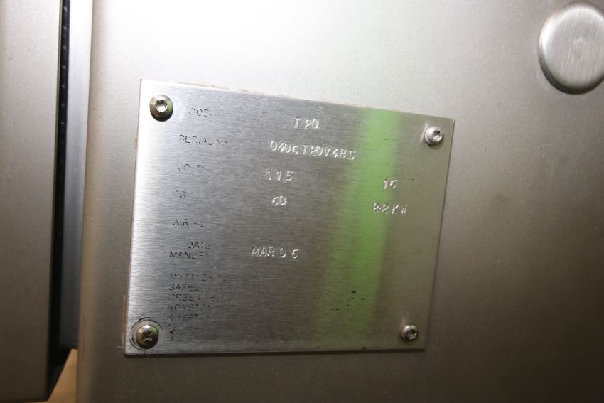 2006 Safeline In-Line S/S X-Ray System, Model T20, SN 0406T20V485, with 11 3/4" W Belt, 6" H Product Opening, Touch Pad Display with Controls, (Note: Some Front Control Switches Missing or Needs Repaired) (W403)