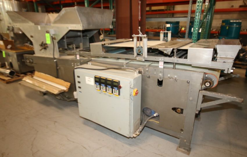 Pin Wheel Dough Roll Machine, with (4) 14" W Top Mounted Aluminum Rollers, 24" W Conveyor Belt, with On-Board Controls with (4) Allen Bradley Powerflex 4 VFD's, (Overall Diam. 166" L x 5 ft W x 68" H) (W438)