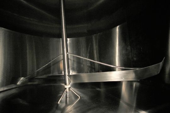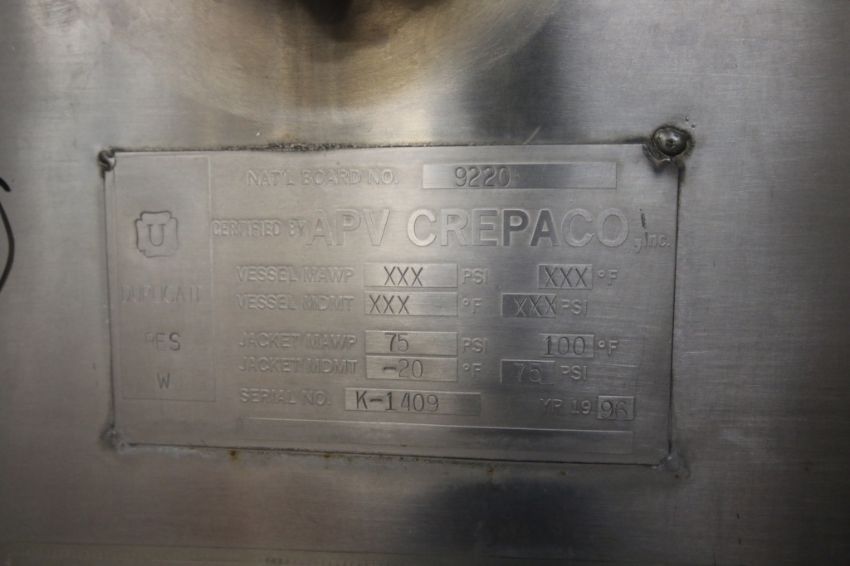 APV Crepaco 6,000 Gal. S/S Vertical Jacketed Silo Tank with Vertical Agitation: Heavy Duty Agitator for Concentrate; Painted Exterior, S/N K1409, 12'6" OD x 32' High