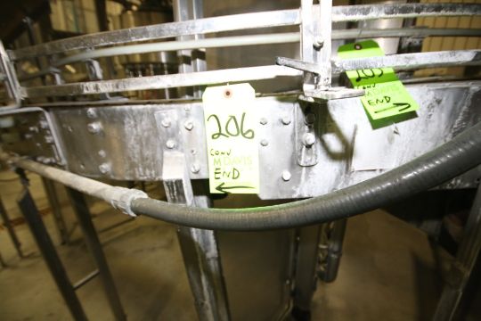 { Group of lots: 202, 203, 204, 205, 206, 207 } } } } } Approx. 25ft of AIS Brand All S/S Covered 3 1/4" Table Top Chain Conveyor with Legs (From Transfer to Inlet of Federal Filler)