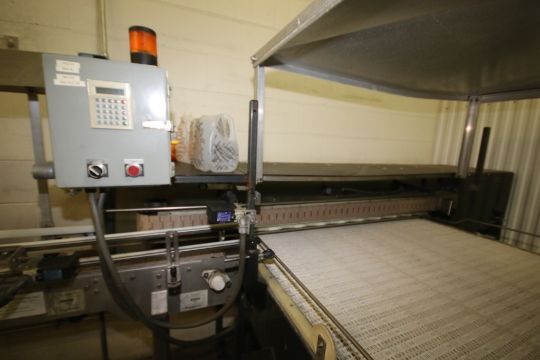 AIS Container Handling Plastic Bottle Debagger 48" Wide x 10'6" Long Belt with End Transfer Conveyor