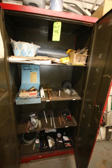 Metal Shop Cabinets with Contents to Include Safety Equipment, Allen Wrenches, Fuse Pullers, and Hack Saw and Misc.