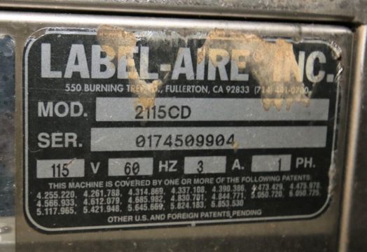 Label Aire Model 2115-CD Wrap Around Labeler System with 12ft Long 4.5" S/STable Top Chain and Conveyor