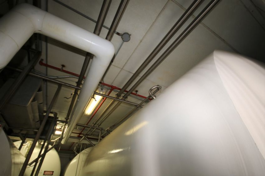 { Group of lots: 343, 344 } } } } } Lot of All Installed S/S Piping in Blend Room and Tank Rooms- Includes (3) Flow Verters; 2", 2.5" and 3" Sizes of Piping; In Excess of 700ft