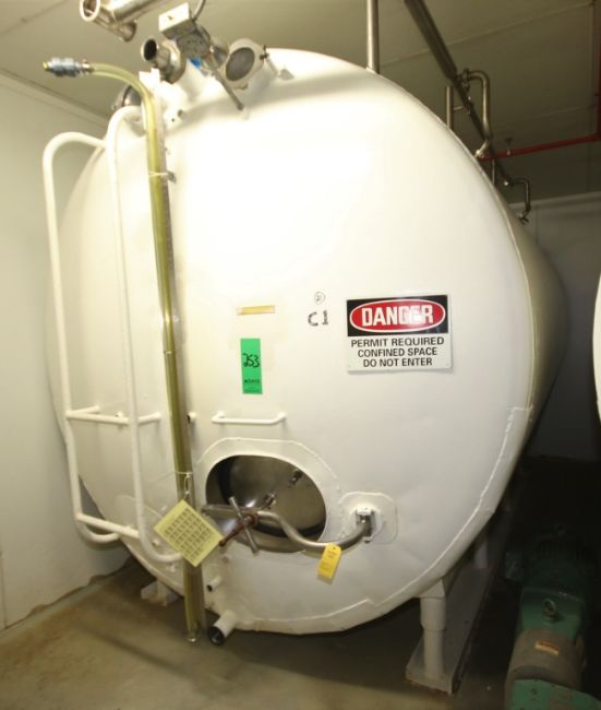 { Choice of lots: 253, 254, 255 } } } } } Crepaco 5,000 Gal. S/S Insulated Horizontal S/S Tank with Painted Exterior, No Agitation, 8' Diameter x 13'6" Long