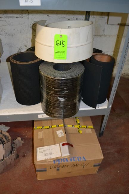 { Group of lots: 614, 615, 616, 617, 618, 619, 620, 621 } } } } Lot of New Rubber Conveyor Belting- Approx. (8) Rolls, Most New