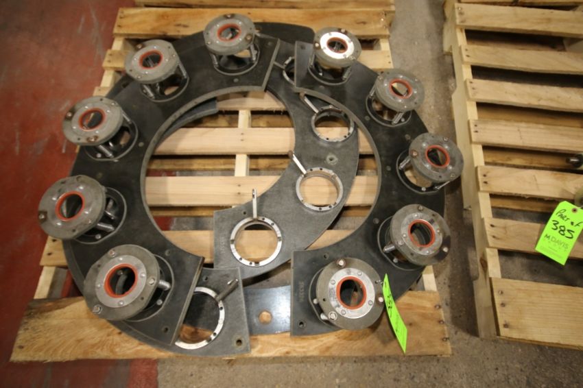{ Group of lots: 380, 381, 382, 383, 384, 385, 386 } } } } Set of Misc. Round Container 2" Diameter Change Parts with (4) Plastic Infeed Screws