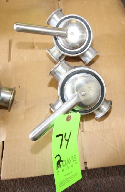 { Group of lots: 73, 74 (P) } } } } } } Tri Clover 2" 3 Way S/S Rubber Plug Valves with Clamp Ports