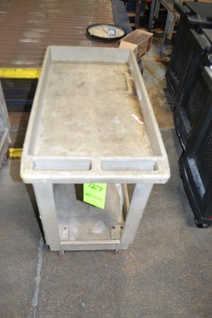 { Group of lots: 723, 724, 725, 726, 727 (P) } } } } Rubbermaid Composite Parts Cart; 34" Long x 18" Wide x 32" High