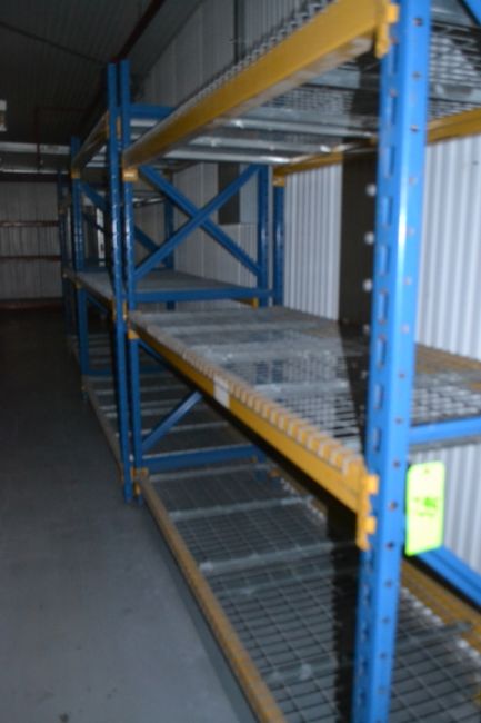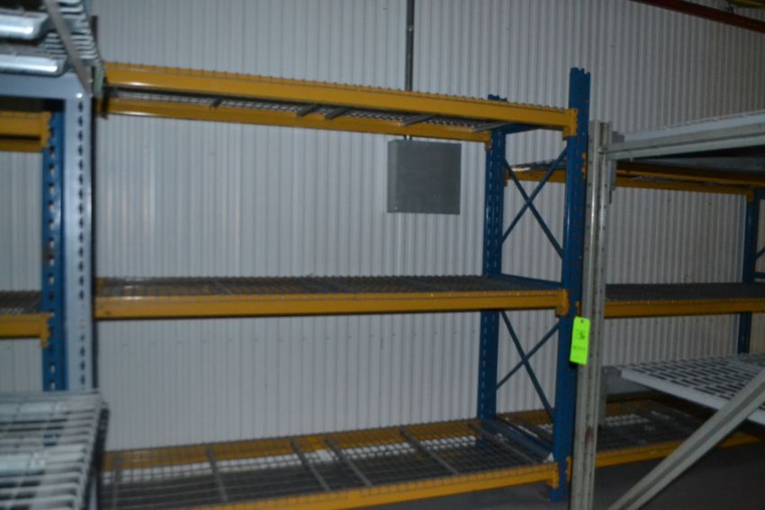 4 Sections of 2 Pallet Wide Standard Racking (3) Shelves with Wire Tops: 8 ft. High (Upper Level)