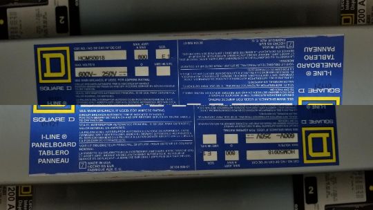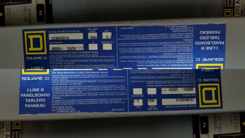 (2) Plant Electrical Panels Including (1) Square D 600 Amp, cat no. 32886435-001 - 208Y/120V with (10) Breakers up to 600 Amp & (1) Square D 800 Amp, cat no. HCM50918 with (20) Breakers up to 200 Amp, - 600V