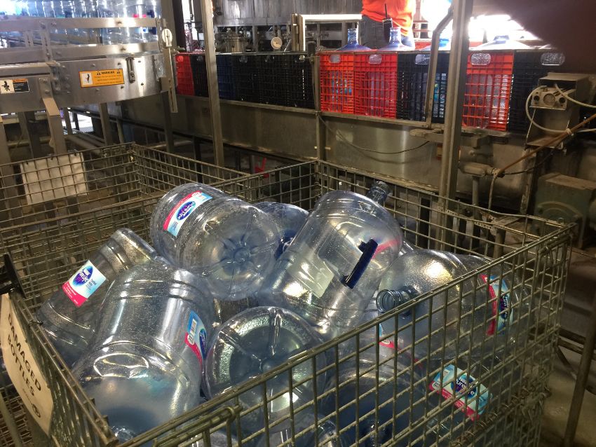 S/S Frame 5 Gal. Case Conveyor System Feeding Into Bottle Washer with Chain and Drives, Aprox. ____ ft.