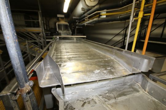 Key 16 ft L x 36" W All S/S Vibratory Shaker Deck, Mounted on 2 ft H S/S Frame, Includes 16 ft 6" L x 93" W x 7 ft H S/S Operators Platform with Stairs & Plastic Grating (89) (Rigging Price: $100. Includes strapping to standard 48 x 48 pallet when practical.)