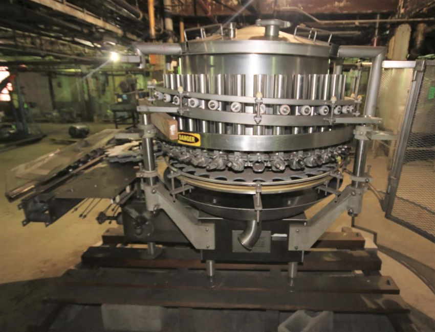 Elmar 35-Valve S/S Rotary Can Filler, Model RPE-355 1 L.H., S/N EM90-9027, Set-Up with All S/S Base and Change Parts (1991) (Rigging Price: $250. Includes strapping to standard 48 x 48 pallet when practical.)