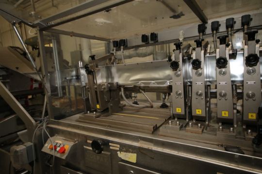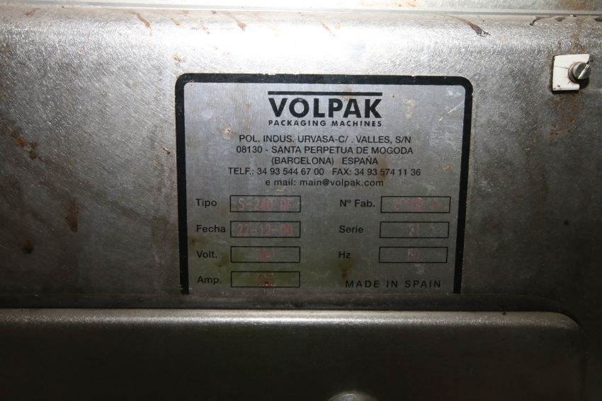 2013 Rebuilt Volpak Pouch Filler, M/N S-240-DF, Fecha 22-12-00, N Fab: 11102, with S/S Infeed Vessel/Funnel and Valves, 380 Volts, with Touchscreen and Allen Bradley Controls, Overall Dims.: 22' L x 6' W (Currently Set-Up Running 6 oz. Pouches) (Rebuilt by Volpak in 2013)