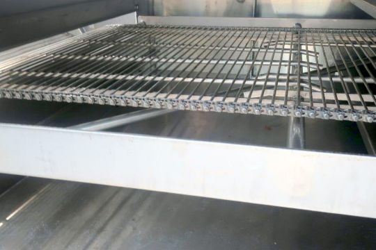 Wolverine Corporation Jetzone Dryer/Oven "Cheese Melter", Model SB 3 5x11 51.  .8MMBTU Maxon Natural Gas Burner Located in the Cheese Melter’s Combustion Chamber Designed to Lightly Melt Cheese Particles on the Top of Pizzas or Pizza Slices.  Includes (1) 42” Wide Omni-Grid Conveyor Chain and Sprockets at Controlled Speeds up to 80’ per Minute., (1) Conveyor Hydraulic Drive Motor, (2) Integral Stainless Steel Circulation Fans, (2) 20 H Fan Motors, Control Cabinets with Honeywell UDC 3000 Temperature Controller.  Wolverine Project # 9656, Built 1997.  MANUAL & DRAWINGS INCLUDED.  ($1,000 Loading Fee)
