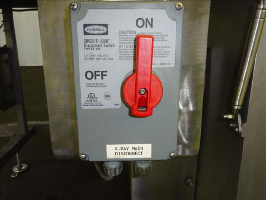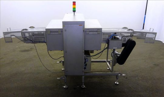 Sesotec Raycon X-Ray Food Inspection System, Type 450/100 US-INT 50. Serial # 1140020683-X. Has an integrated conveyor belt that is designed for use in wet or dry applications and inspects packaged food product for contaminants or other unwanted defects. In-line detection of magnetic or non-magnetic metals, glass, ceramic, stone, bone, PVC, rubber, etc., even in metallic or metal-coated packaging such as foil. The X-ray inspection software is also optimized to identify product defects such as broken, deformed or missing product with minimal operator training. X-Ray Tube Model VJT120, X-Ray Power 50kV/100W. Built 2014. ($75 Loading Fee)