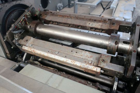 Campbell Wrapper Corp. Horizontal Flow Wrapper, Model: Revolution. Unit has a 2-up seal head, automatic film splicing table, and a smart-belt infeed system. Has Allen Bradley Kinetix Servo controls and an Allen Bradley Logix CPU PLC (includes HMI). Serial number: 5402-0246. 3/60/460V. *Includes box of spare parts and various sized formers.($500 Loading Fee)