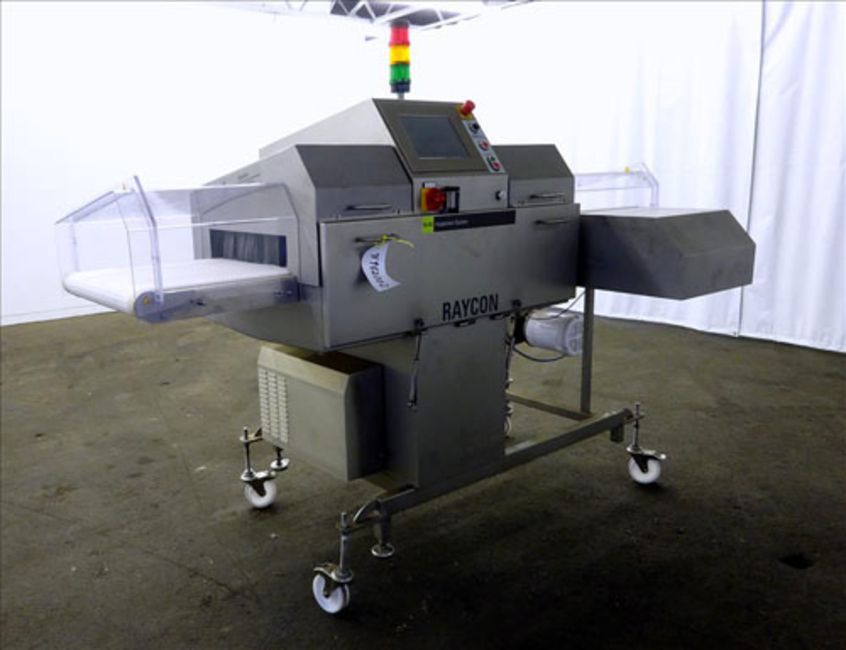 Sesotec Raycon X-Ray Food Inspection System, Type 450/100 US-INT 50. Serial # 11422018372-X. Has an integrated conveyor belt that is designed for use in wet or dry applications and inspects packaged food product for contaminants or other unwanted defects. In-line detection of magnetic or non-magnetic metals, glass, ceramic, stone, bone, PVC, rubber, etc., even in metallic or metal-coated packaging such as foil. The X-ray inspection software is also optimized to identify product defects such as broken, deformed or missing product with minimal operator training. X-Ray Tube Model VJT120, X-Ray Power 50kV/100W. Built 2014. ($75 Loading Fee)
