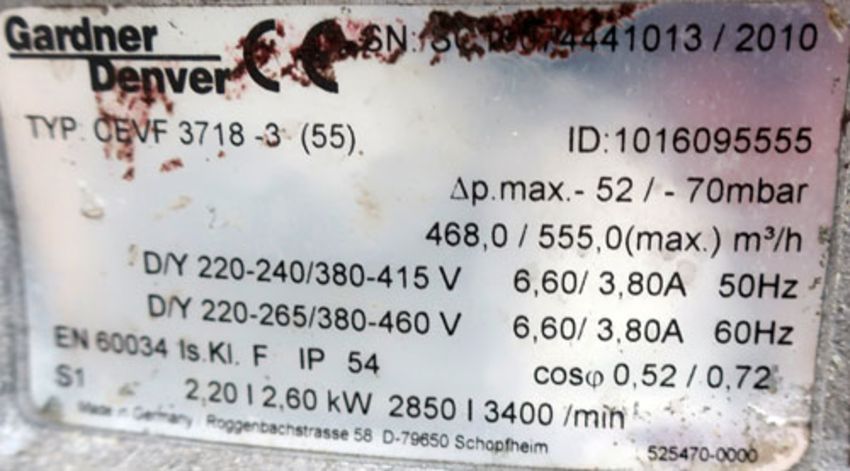 Lot of (3) Gardner Denver multi-stage radial suction blowers, Model F-CEVF 3718-3 (65). Built 2013.($75 Loading Fee)