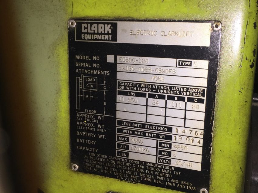 Clark Heavy duty 8000 pound Sit Down Forklift Truck battery operated. Battery weak (Rigging and loading fees included in the selling price).