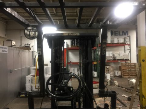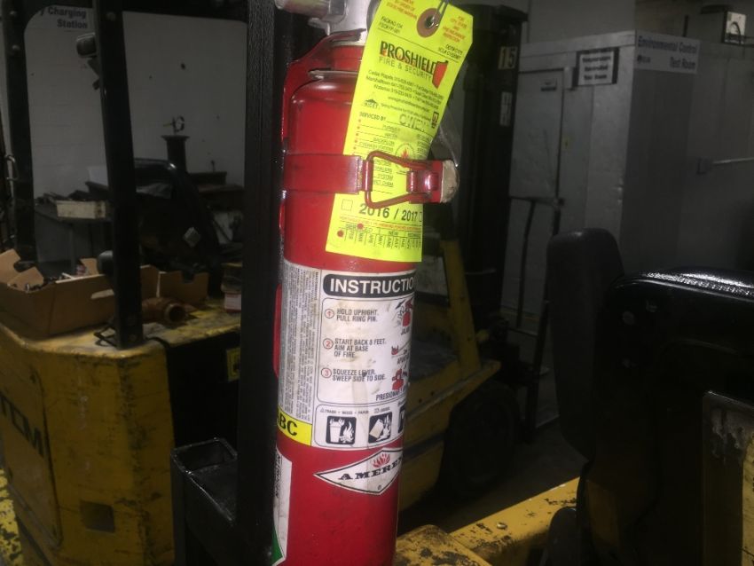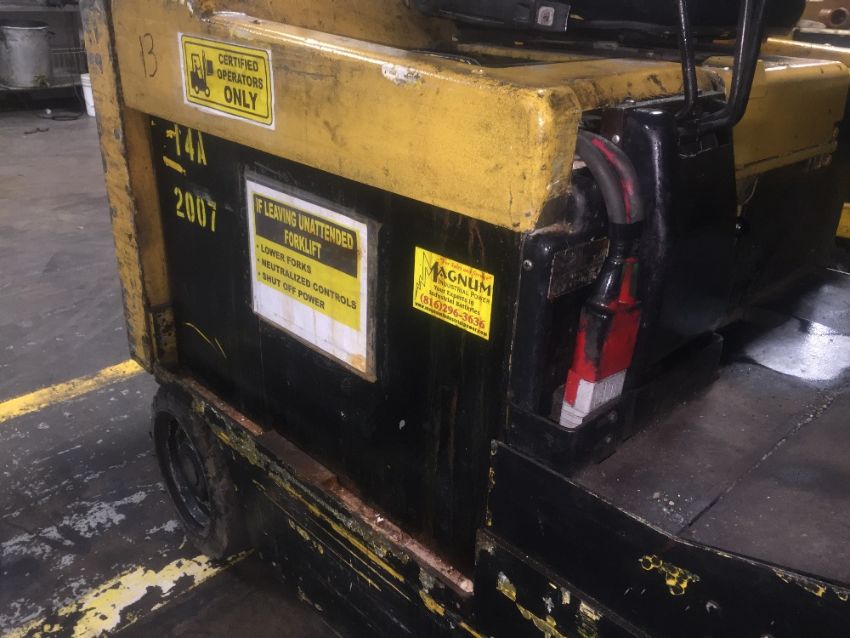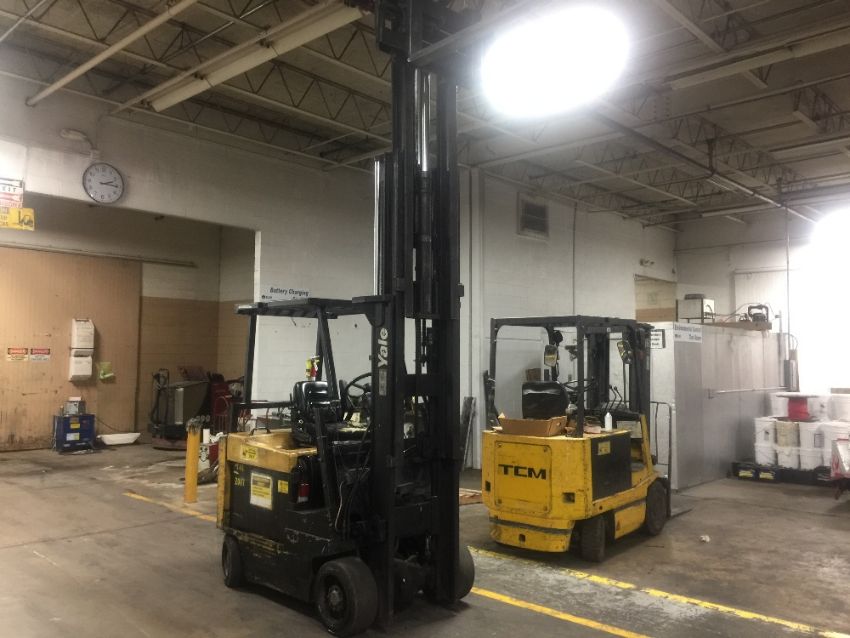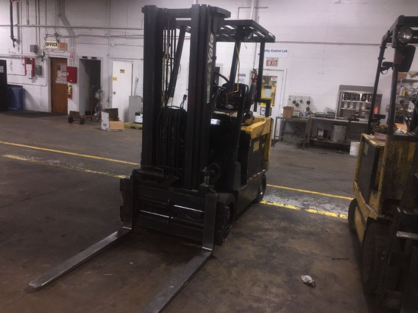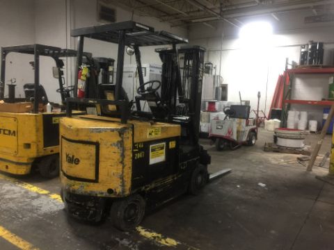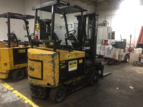 Yale Electric Sit Down Forklift truck, full control of forks, side shift forks gap and tilt control, fire extinguisher inspected through 2019. (Rigging and loading fees included in the selling price).