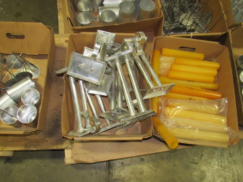 One lot, 10 boxes of assorted candle making molds and associated parts -- Removal and loading free. Optional prep for shipping $25.00.