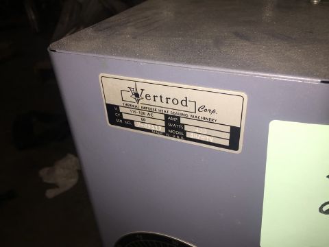 Vertrod Thermal Impulse Tube Heat Sealer 1000 W -- 115-120V - 60 Cycle - , 14" Sealing Jaws Number V-60082 Model 14H/HTV -- Free Removal and Loading included in the price. Palletizing $25.00 Optional