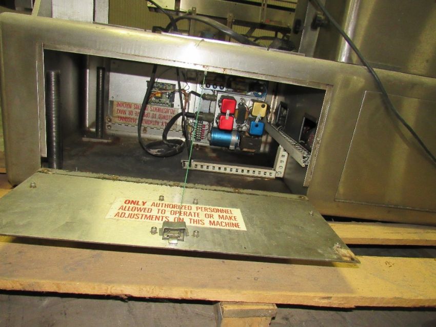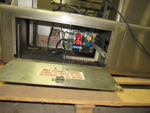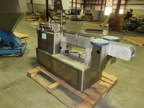 Accraply stainless steel conveyor indexer for labeler with chainlink conveyor belt. This Run on 115V power indexes bottles or containers to correctly space them as needed for labeling . All Stainless Steel contact part -- (RIGGING INCLUDED WITH SALE PRICE) -- Optional Palletizing Fee $75.00