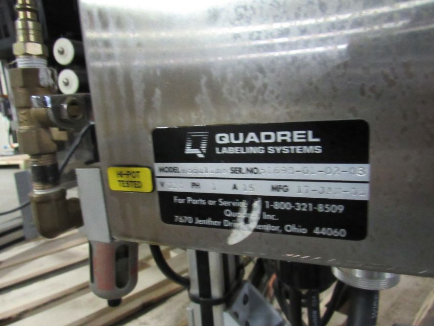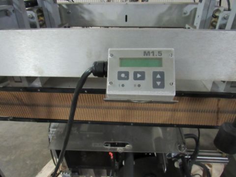 Bottom Labeler with Sato Label Printer, Pneumatic Cylinder for label application, belt side conveyor, with full speed controller, label counters, sensors and electrical control box - was used to label bottom of glass wax jars. (Rigging and loading fees in the selling price. Optional Palletizing $125).