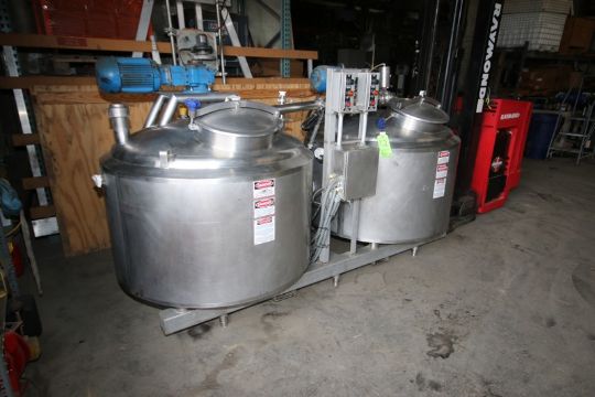 DCI Dual 150 Gal. S/S Slurry Tank System, S/N MS53-2 & MS 53-1, Mounted on S/S Skid, with 3 hp Top Mounted Agitation Motors (LOCATED IN FT. WORTH, TX)