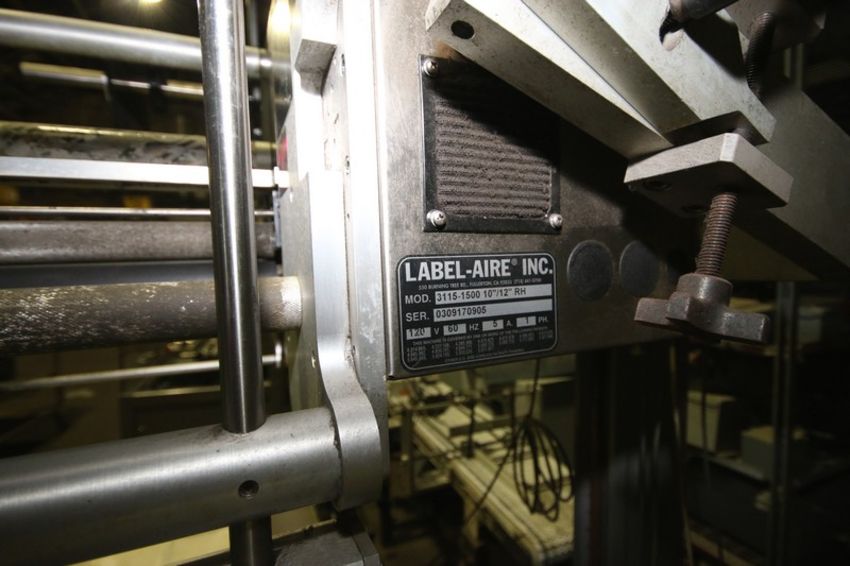 Label-Aire Label System, M/N 3115-1500, 10"/12" RH, S/N 0309170905, 120 Volts, Mounted on S/S Portable Frame (NOTE: With NEW Belts) (LOCATED IN FT. WORTH, TX)