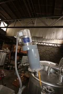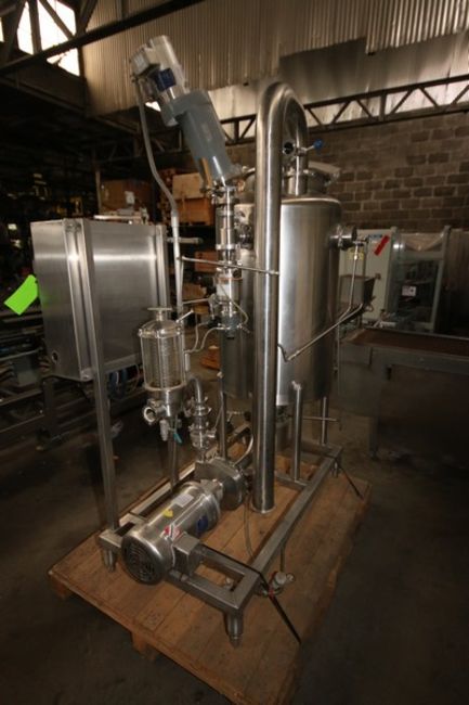 S/S Tank & Pump System, with Aprox. 90 Gal. S/S Single Wall Tank, Tank Dims.: Aprox. 38" H x 27" Dia. With 1/2 hp S/S Clad Agitation, with Fristam S/S 3 hp Centrifugal Pump, with 1760 RPM Baldor Motor, 208-230/460 Volts, Mounted on S/S Skid, with Allen Bradley PowerFlex 40 & Allen Bradley PowerFlex 70 (LOCATED IN FT. WORTH, TX)