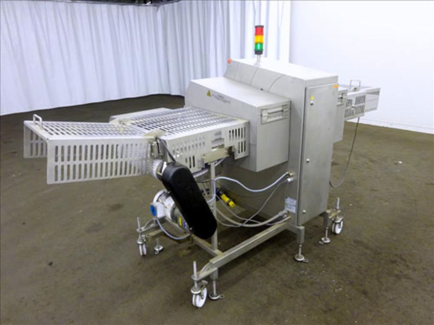 Sesotec Raycon X-Ray Food Inspection System, Type 450/100 US-INT 50. Serial # 11422018353-X. Has an integrated conveyor belt that is designed for use in wet or dry applications and inspects packaged food product for contaminants or other unwanted defects. In-line detection of magnetic or non-magnetic metals, glass, ceramic, stone, bone, PVC, rubber, etc., even in metallic or metal-coated packaging such as foil. The X-ray inspection software is also optimized to identify product defects such as broken, deformed or missing product with minimal operator training. X-Ray Tube Model VJT120, X-Ray Power 50kV/100W. Built 2014. (Rigging & Loading Fee $75) (Located in Chicago, IL)