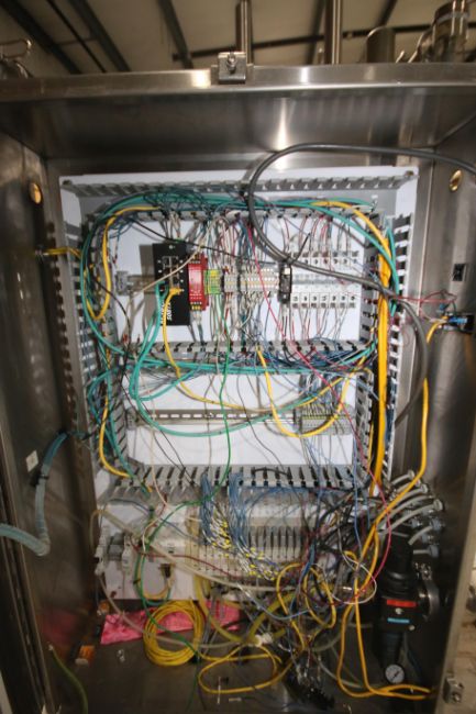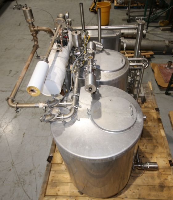 2011 Skid Mounted 2-Tank S/S CIP System, with Aprox. 230 Gal. or 48" H x 38" W Tank, 140 Gal. or 46" H x 30" W Tank, 50" L x 8" W S/S Shell & Tube Heat Exchanger, Anderson In-Line Flow Meter with Read-Out, 10 hp / 3525 rpm Centrifugal Pump, (8) Alfa Laval S/S Air Valves, Check Valves, Pneumatic Ball Valves, In-Line Filter, Level Sensors, Pressure Sensors, On-Board Control Panel with Allen Bradley Panelview 1000 Display & Solenoid Valves, (CIP Overall Diam. 112" L x 80" W x 93" H), (W552) (Rigging & Loading Fee $300.00) (Located in Pittsburgh, PA)