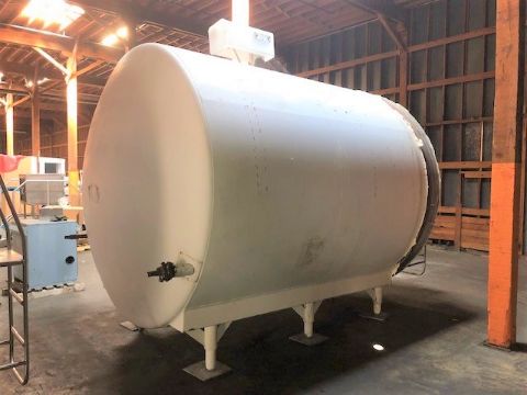 Walker S/S 4,000 Gal. Horizontal Jacketed Tank, Model 10593, S/N HHT4886R, Area Sq. Ft. 84/R-12, Working Pressure 85 PSIG, Tested 145 PSIG, with Dual CIP Sprayball, Top Mounted Agitation, Overall DIMS 160"L x 136"H x 104"W (Green Tag #99) (Rigging & Loading Fee $1,325.00) (Located in Richmond, VA)