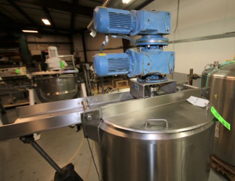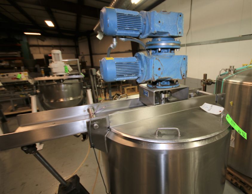 Cherry Burrel Aprox. 75 Gal Hinged Lid S/S Processor / Kettle, SN E-458-90, with Dual Motion Agitator with Scrape Surface, SEW 1 hp @ 1760 rpm Drive Motors, Pneumatic Bridge, S/S Bottom, S/S Legs, 230/460 V 3 Phase, max working psi 150 psi @ 400 degree F, (Overall Diam. - 66" W x 78" H)(W556) (Rigging & Loading Fee $400.00) (Located in Pittsburgh, PA)