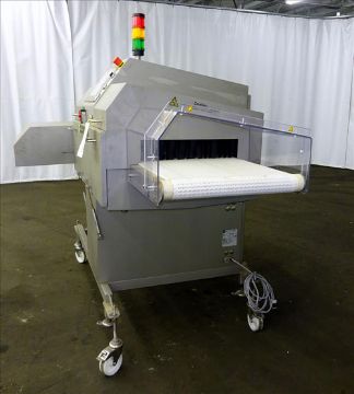 Sesotec Raycon X-Ray Food Inspection System, Type 450/100 US-INT 50. Serial # 11422018352-X. Has an integrated conveyor belt that is designed for use in wet or dry applications and inspects packaged food product for contaminants or other unwanted defects. In-line detection of magnetic or non-magnetic metals, glass, ceramic, stone, bone, PVC, rubber, etc., even in metallic or metal-coated packaging such as foil. The X-ray inspection software is also optimized to identify product defects such as broken, deformed or missing product with minimal operator training. X-Ray Tube Model VJT120, X-Ray Power 50kV/100W. Built 2014. (Rigging & Loading Fee $75) (Located in Chicago, IL)