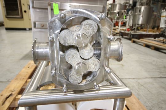 2013 Alpha Laval 5 hp Positive Displacement Pump, Pump Type: SRU47079/LS, S/N 896325, 2-1/2" x 2-1/2" Clamp Type Inlet/Outlet, Mounted on S/S Frame (NOTE: Lip of Inlet/Outlet--Some Bending) (Rigging & Loading Fee $50.00) (Located in Pittsburgh, PA)