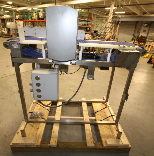 Safeline S/S Metal Detector System, Model PPH / 18X03 / 55 / 100-300 / HD, SN 34196 with 16" W x 6 5/8" Opening with Digital Read-Out, Mounted on 58" L x 51" H S/S Power Belt Conveyor Frame, with 16" W Intralux Type Belt, with Leeson 1/.75 hp / 1750/1450 rpm S/S Clad Drive Motor, 230/190 V 3 Phase with Controls, (W881) (Rigging & Loading Fee $200.00) (Located in Pittsburgh, PA)