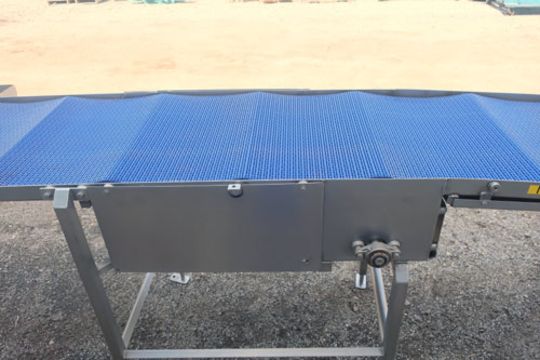 Plastic motorized belt conveyor, 24" wide x 196" long. (Rigging & Loading Fee $75)  (Located in Chicago, IL)