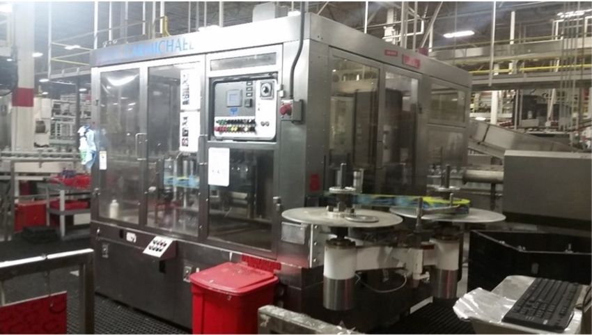 KHS Carmichael Model 920B Roll Fed Labeler, S/N: 2412-B5-0034-SP-CW, Dual unwind station, S/S frame, Nordson Glue Unit, Allen Bradley PLC Controlled, Change Parts for .5L 20oz and 24oz PET Bottles, Dims: 12' L x 9' W x 8' H, Speed: 400+ BPM, Electricity: 460V 3PH 60HZ, Asset Number: 2564